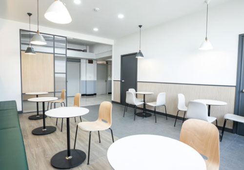 스터디라운지는 오픈형 공간이지만 공부하는 곳이라는 특성을 살려 집중력 향상에 최적화된 인테리어를 활용해 멋스럽게 연출했다. 특히 전자기기 사용이 필수인 학생들을 위해 콘센트가 매립된 바(Bar)와 좌석을 배치했고, 다양한 좌석과 테이블을 마련해 학생들이 원하는 자리에서 학습할 수 있도록 했다. 이곳은 학습 공간이자 소통과 쉼에도 유연한 공간이다. 학생들은 개인 혹은 그룹을 구성해 스터디 활동을 하거나 공강 시간을 이용해 친구들과 휴식을 취하기도 한다. 학생 중심의 개방형 학습 공간, 스터디라운지에서 학생들이 함께 소통하고 학습하며 꿈을 키워가길 기대해본다.