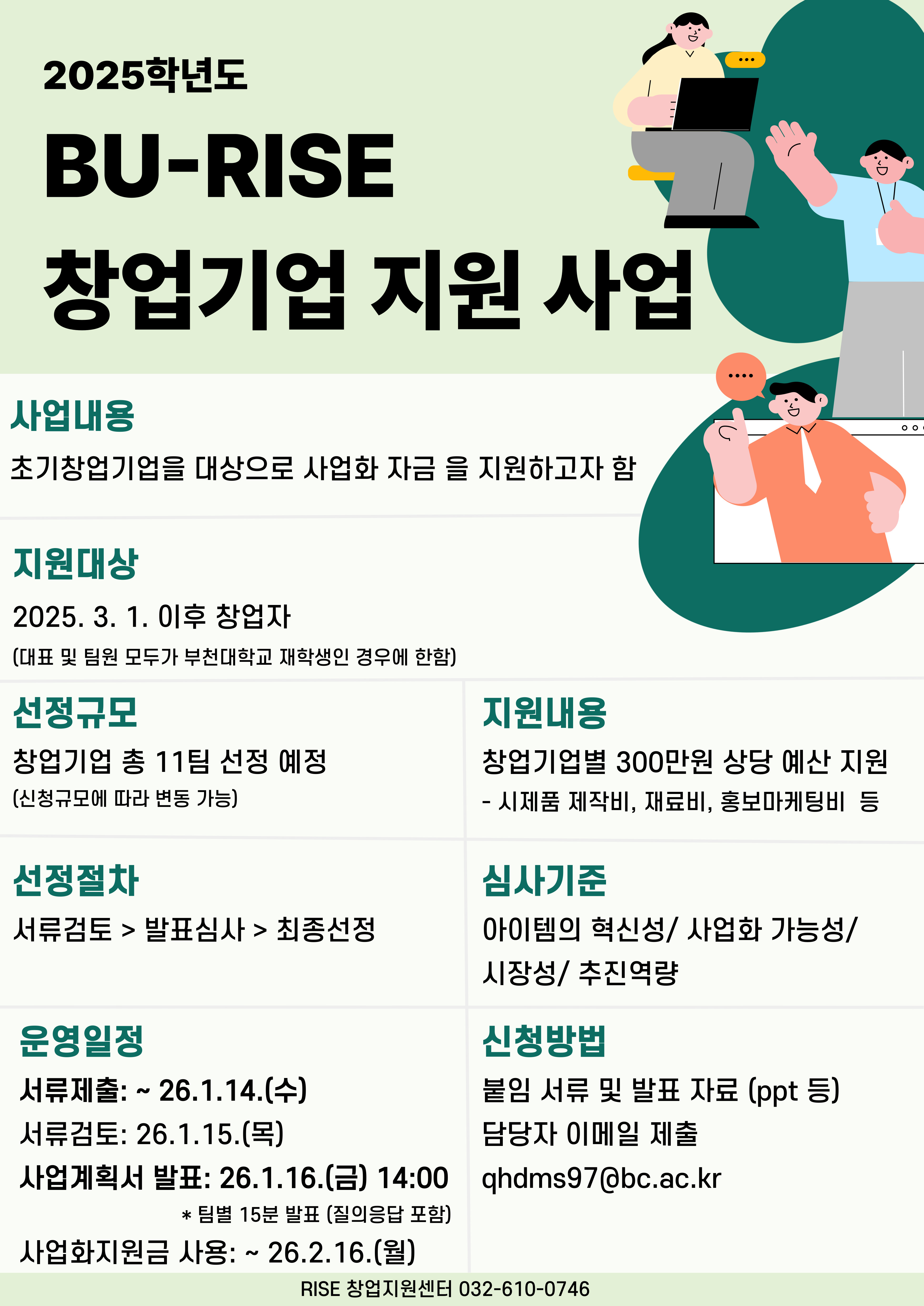 담당자 메일: 창업지원센터 qhdms97@bc.ac.kr (032-610-0746)